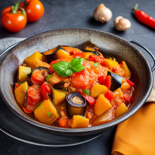 토마토, 가지, 호박, 피망, 양파, 마늘, 타임, 바질과 같은 허브로 만든 프랑스 전통 야채 스튜입니다.