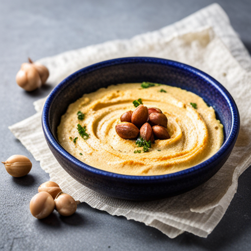 병아리콩, 타히니(참깨 페이스트), 레몬주스, 마늘, 올리브 오일을 혼합하여 만든 인기 있는 딥 소스로 종종 피타 빵이나 야채와 함께 제공됩니다.